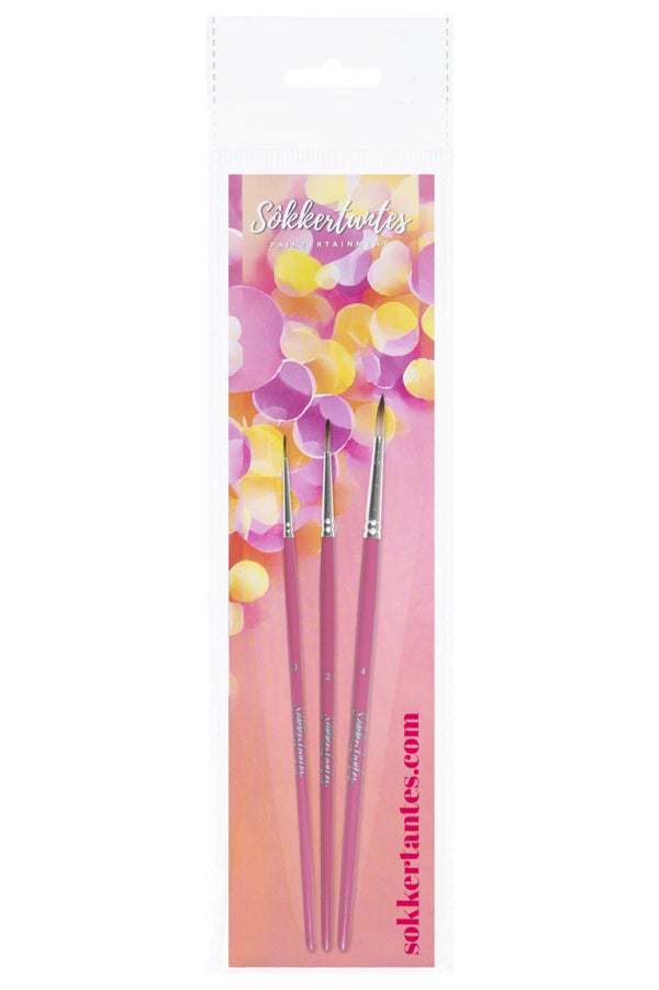 In de Round Brush Set van Sôkkertantes Brushes vind je 3 verschillende maten synthetische ronde penselen in de maten 0, 2 en 4.